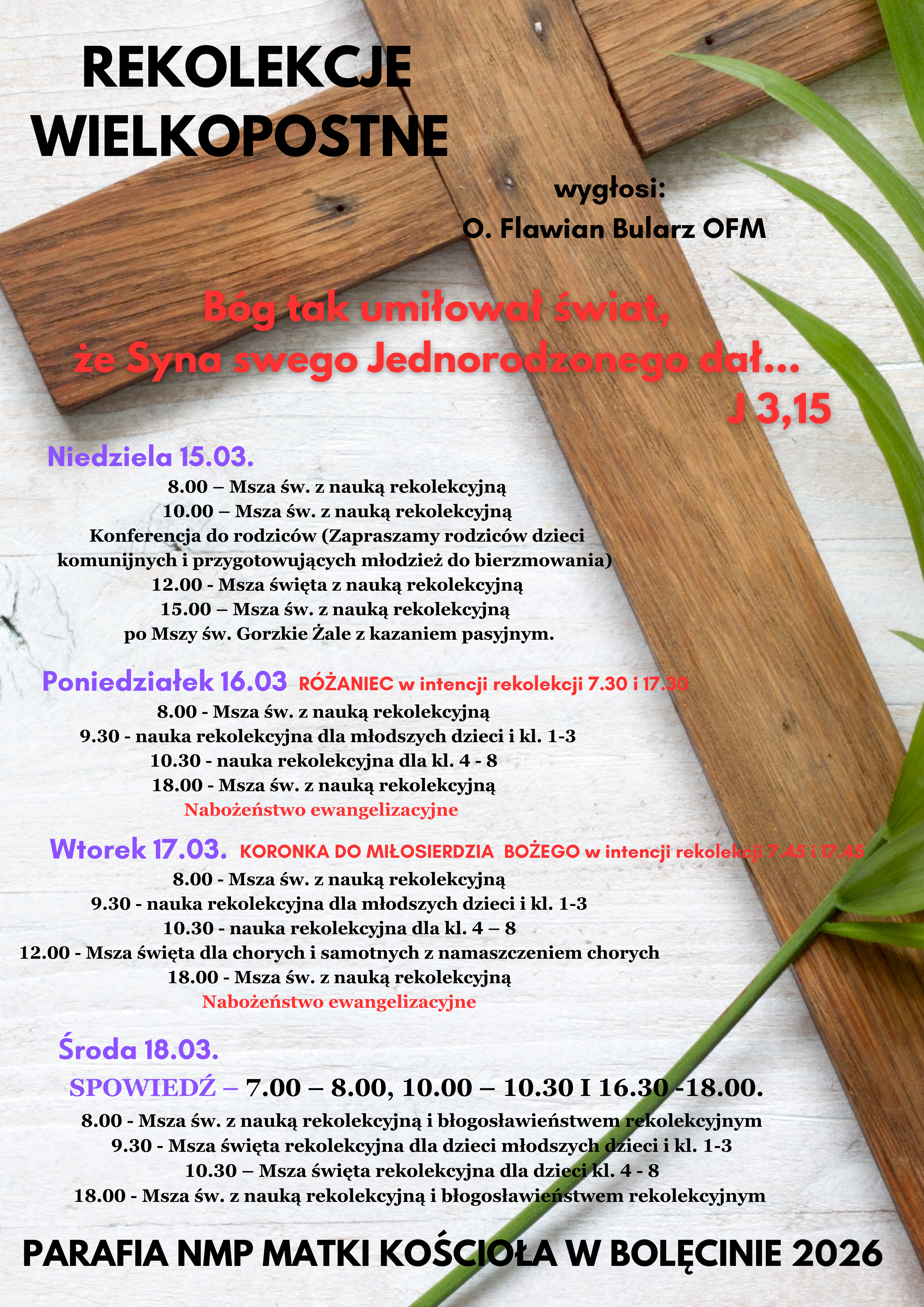 poniedziałek, środa, piątek:po Mszy św.